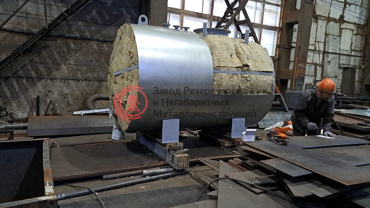 Процесс утепления резервуара РГСн-5 м3 для ООО "Энерготехсервис". Утеплитель: минеральная вата.